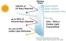 This window film is an “Infrared Heat Rejection Film” that separates IR from sunlight, which provides large amounts of heat rejection, EVEN with very light window film shades.